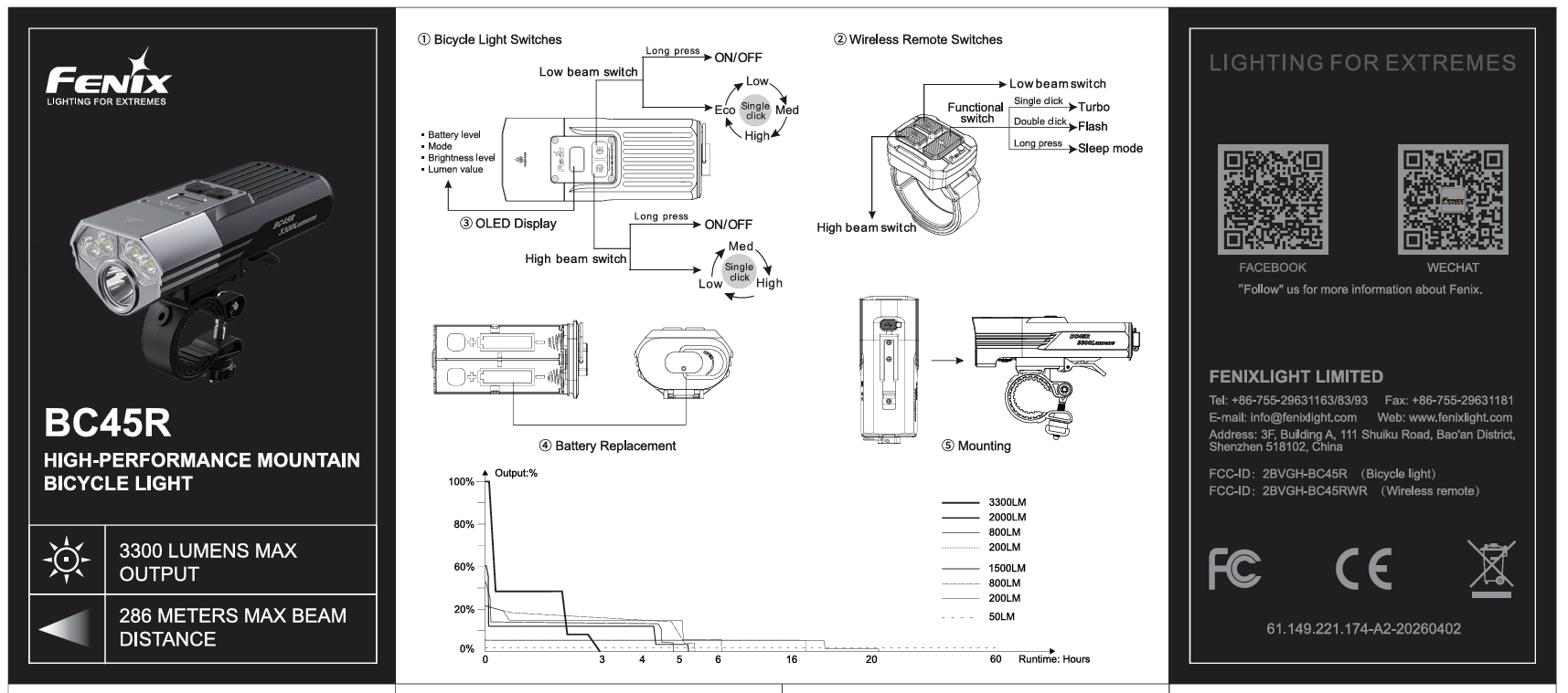 on the OLED display. Single click any switch on the wireless remote switch or the bicycle light to wake up the bicycle light and enter the selected mode.