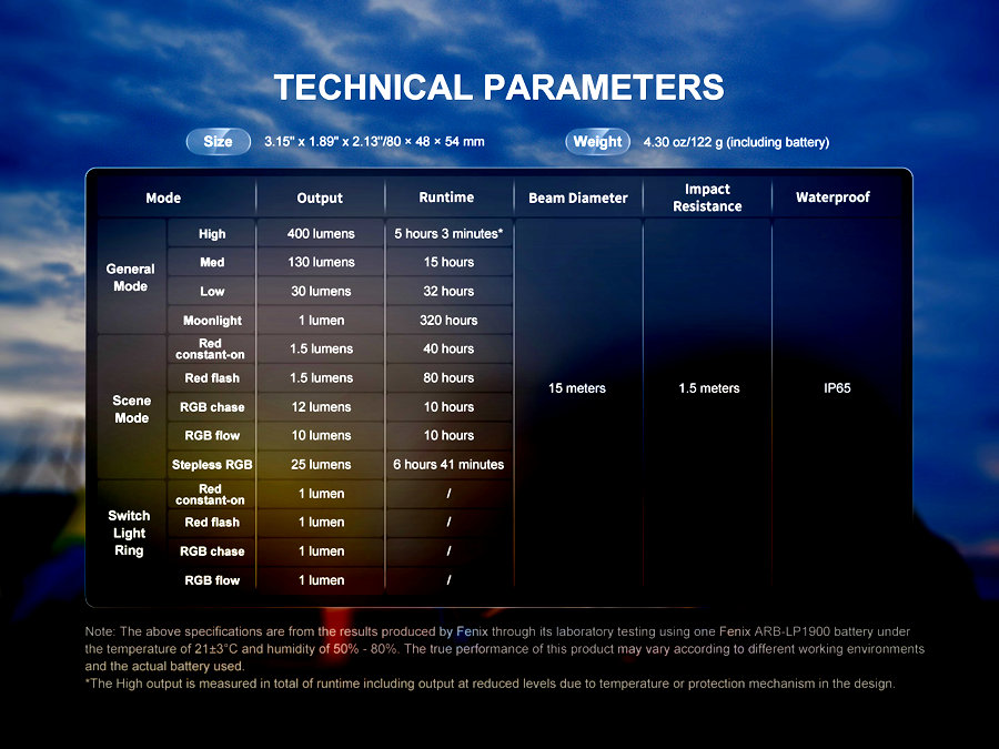 *This function only works with a Fenix ARB-LP1900 rechargeable battery.