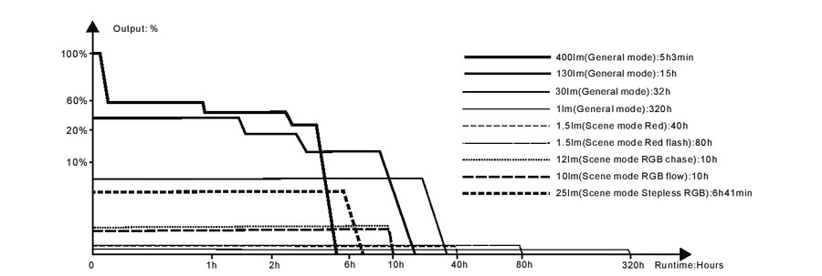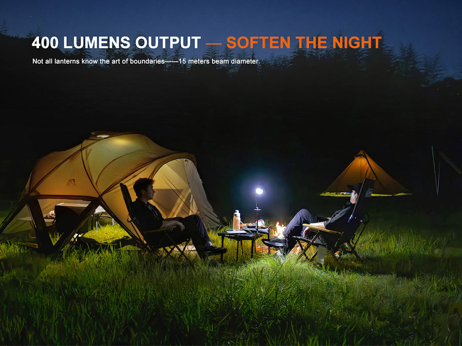 The lantern will accumulate a lot of heat when used for extended periods. When the lantern reaches a temperature of 50°C/122°F or above, it will automatically step down a few lumens to reduce the temperature. When the temperature drops below 50°C/122°F, the lantern will gradually recall the preset output level.