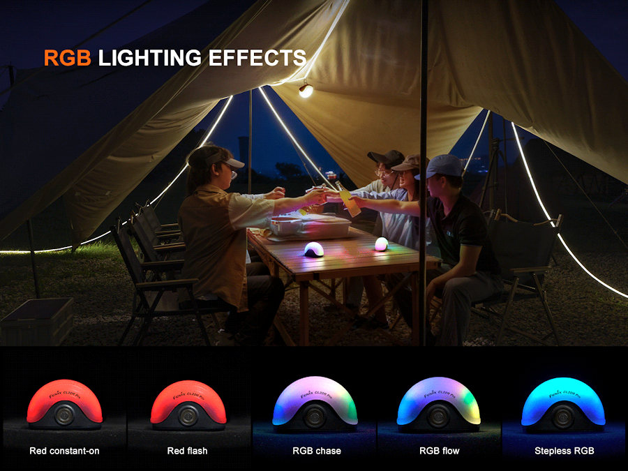 Designed as a premium light source and a fun light to create a party atmosphere or keep the kids entertained, CL20R Pro is controlled by a single switch and offers 4 white light levels of 1, 30, 130 and 400 lumens, red and red flashing modes, plus multi colour RGB chase, flow and stepless colour modes. There's also a delay-off function that can be set to switch the light off after 20 minutes in white light mode.
