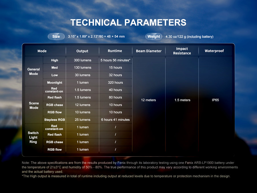 Fenix ARB-LP1900, Dedicated battery -3.8 V Recommended √√ Alkaline Battery AAA 1.5 V - Usable* √ Ni-MH Battery AAA 1.2 V - Usable* √ Rechargeable Battery (Li-ion) 10440 3.7 V - Banned** X Warning: