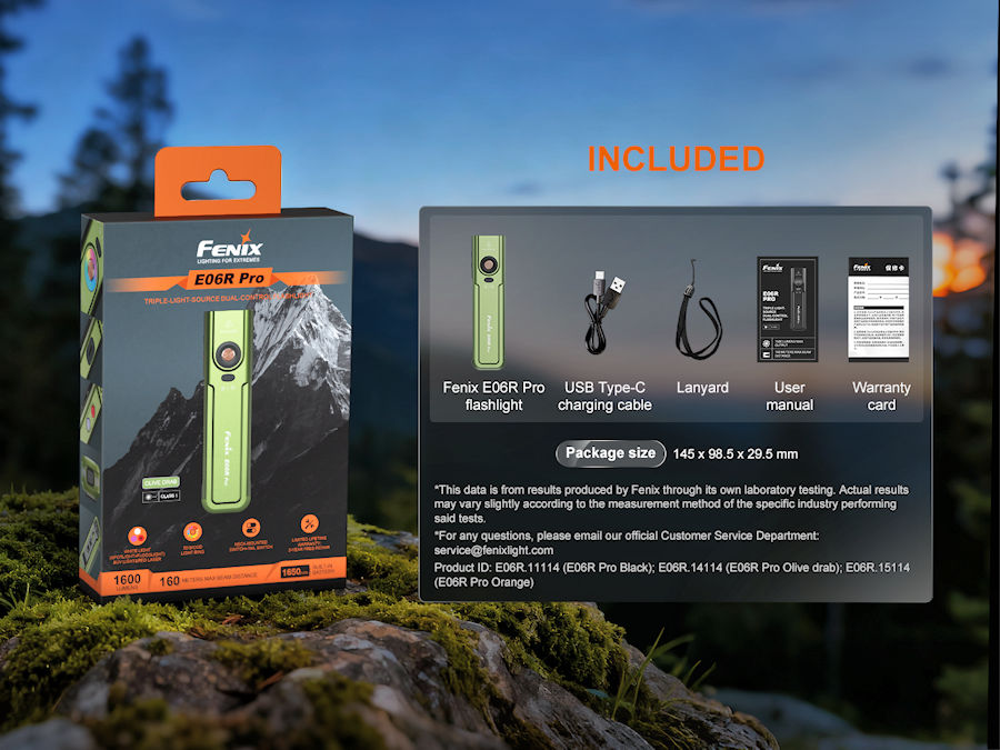Retail Packaged Fenix E06R Pro Torch USB C Charge Lead Lanyard User Manual Warranty Card