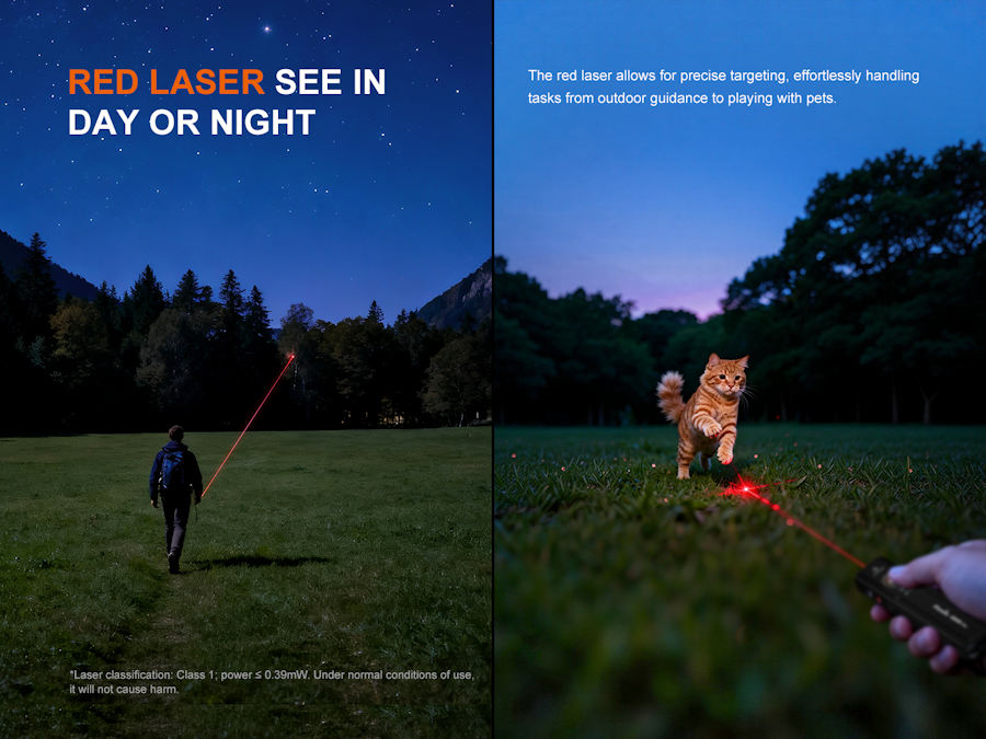 When the voltage level drops below the pre-set level, the flashlight is programmed to downshift to a lower brightness level until Moonlight output is reached. When this happens in Moonlight output, the battery level indicator blinks red to remind users to recharge the flashlight in a timely manner. To ensure normal use, the flashlight will not turn off automatically and will work until the battery runs out.