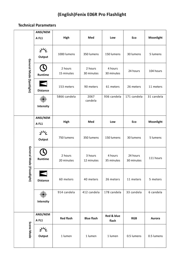 Fenix E06R Pro LED torch features: