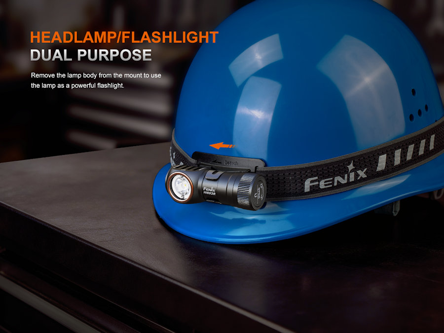 HM53R can be removed from the headband to be used as a hand held right angle torch, attached with the included pocket clip, or mounted with the magnetic tail cap for complete versatility.