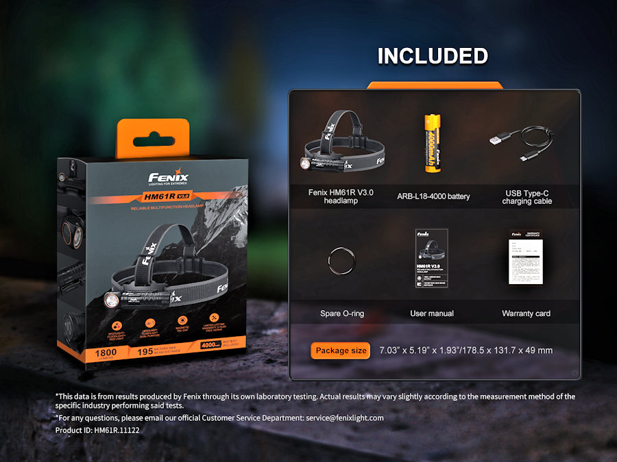 Retail packaged Fenix HM61R v3 Rechargeable LED Headlamp