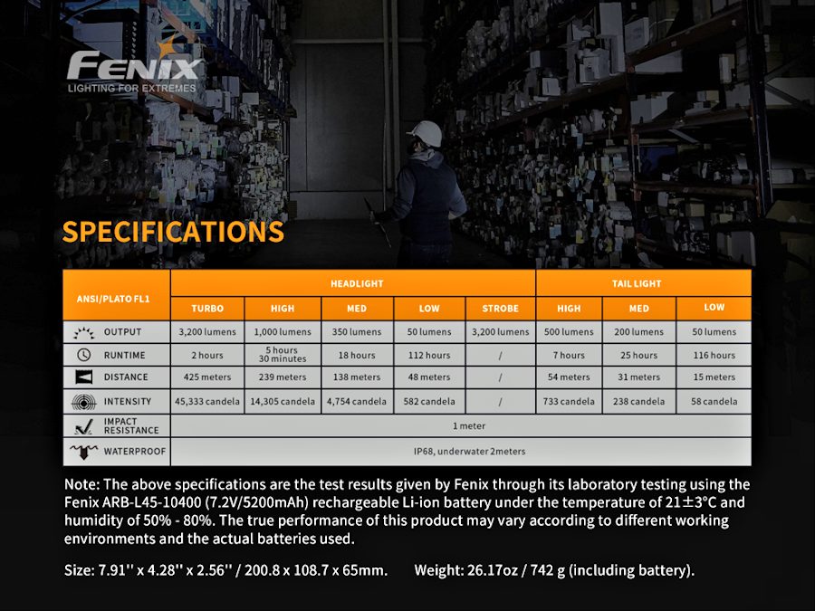 | Additional Battery Type | 1 x Fenix ARB-L45-14000 (Fenix TK72R battery) |